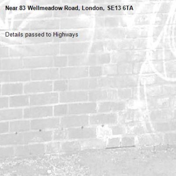Details passed to Highways-83 Wellmeadow Road, London, SE13 6TA 04/11/2025 16:26 Details passed to Highways